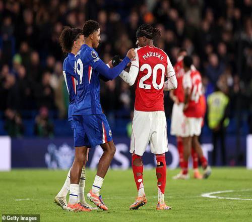 录像显示帕尔默似乎对主场球迷嘘马杜埃凯表示赞同。 当这位边锋踏上球场时,切尔西球迷对他报以一片嘘声。社交媒体上分享的视频显示,帕尔默在替补热身时对马杜埃凯遭遇的嘘声作出反应。帕尔默通过点头回应切尔西球迷,似乎对他的英格兰队友所受到的待遇表示认可。 在一次场上事件中,恩佐-费尔南德斯在切尔西禁区边缘成功抢断马杜埃凯,导致后者倒地。 费尔南德斯和库库雷利亚在成功解围后转身面对倒在地上的马杜埃凯庆祝并高声呐喊。 比赛最终以1-1结束,十人切尔西在对阵英超领头羊的比赛中拿下一分,特雷沃-查洛巴的进球被梅里诺的头球扳平。这一结果使得阿森纳在积分榜上继续保持领先切尔西6分的优势,而蓝军则在曼城周六战胜利兹联后滑落至第三位。