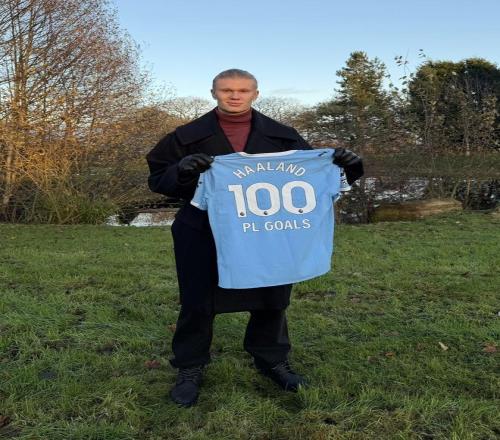 纪念里程碑时刻,哈兰德晒出英超百球纪念球衣