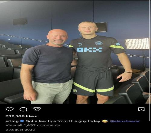 在哈兰德打破英超最快百球纪录后,阿兰-希勒在社交媒体送上祝贺,哈兰德表示感谢。