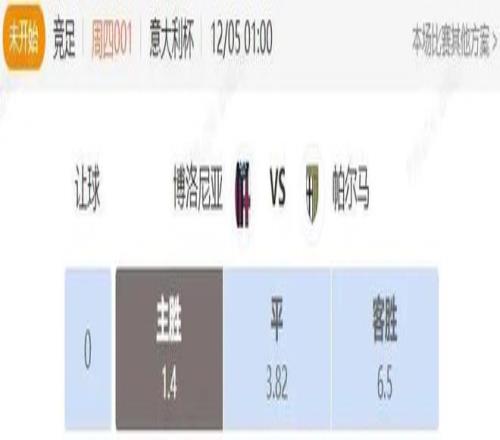 2.专家:高飞 竞足 周四001 意大利杯 博洛尼亚VS帕尔马 开赛时间:2025-12-05 01:00:00