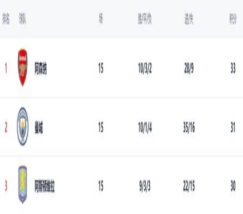 随着这一轮曼城大胜桑德兰,阿森纳输给阿斯顿维拉,导致英超争冠形势大变。曼城总积分达到31分,排名第2,只比榜首的阿森纳少2分。而第3名的维拉也只比阿森纳少3分。 |