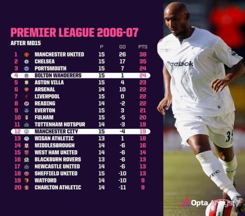 本赛季英超前15轮第412分差小于5分,上一次发生在0607赛季