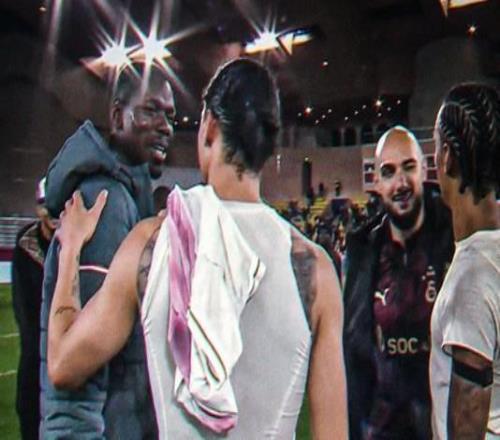 在今天凌晨进行的欧冠联赛阶段第6轮比赛中,摩纳哥主场1-0击败加拉塔萨雷,比赛结束后,博格巴与萨内在场上进行了交流。