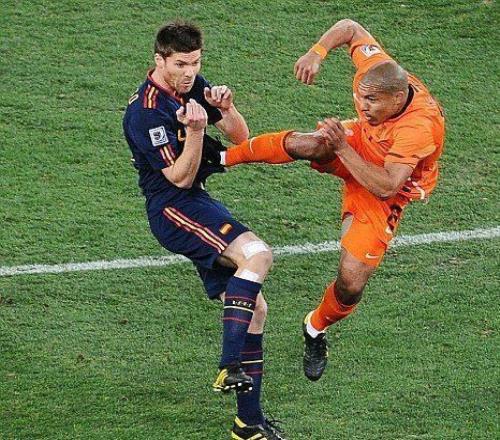 值得一提的是,迭戈-戈麦斯曾经效力于迈阿密国际,与梅西当过队友。他的这一动作,几乎完美复刻了德容在2010年世界杯决赛时飞踹阿隆索的动作,当时的主裁判韦伯仅仅出示了黄牌,被视为轻判的典型例子。 |