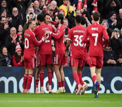 加克波因伤缺席,斯洛特将萨拉赫、基耶萨、伊萨克都留在替补席,锋线只派上了埃基蒂克、维尔茨。 开场仅仅46秒,明特传球失误,戈麦斯头球摆渡,禁区中路无人盯防的埃基蒂克停球之后扫射破门,利物浦迅速取得领先。这是埃基蒂克本赛季英超打入的第6球,也是自8月25日以来首次连续2场英超破门。