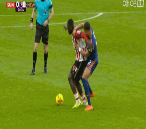上咪咕独家看英超 第34分钟,穆杰莱铲球时膝盖顶到丹-伯恩胸口,裁判出示黄牌对其警告