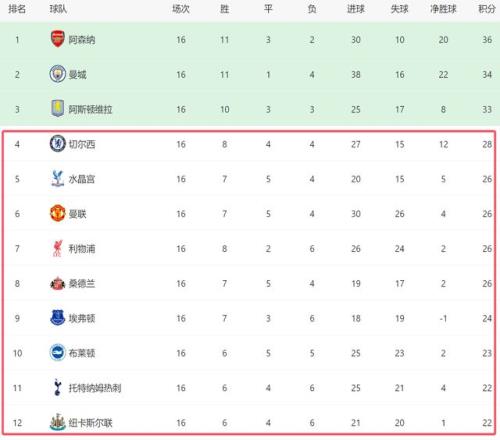本场过后,曼联近7轮联赛,才拿到2场胜利,好在他们还没有被前四的对手拉开差距。截至目前,曼联排名第6,落后第四的切尔西2分,争四依然大有希望,前提是曼联自己别再轻易丢分了。 本赛季,英超争四已经乱成一锅粥了,从第四的切尔西,到第十二的纽卡斯尔,这9支球队就差了6分。现阶段,恐怕没有球队敢保证自己肯定能够在赛季结束后位居前四。曼联在表现远远不达预期的情况下,还能够排名前六,这足以说明,英超大部分争四球队,其实表现都非常一般。事实上,本赛季除了阿森纳之外,英超传统强队表现都有下滑,特别是利物浦,卫冕冠军前16轮才拿到8场胜利,让人大跌眼镜。这个赛季,或许要到最后,才知道哪支球队能进入欧冠! |
