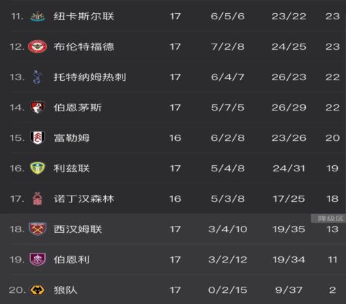 而英超中资队狼队本轮依然萎靡不振,0-2不敌布伦特福德后,遭遇英超10连败,开局17轮不胜追平了英超纪录。狼队基本锁定了一个英超降级名额。