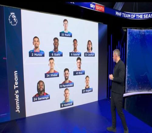门将:罗埃夫斯(桑德兰) 后卫:穆尼奥斯(水晶宫)、格伊(水晶宫)、加布里埃尔(阿森纳)、卡拉菲奥里(阿森纳) 中场:扎卡(桑德兰)、赖斯(阿森纳)、布鲁诺-费尔南德斯(曼联) 前锋:塞门约(伯恩茅斯)、哈兰德(曼城)、摩根-罗杰斯(维拉) 卡拉格做出了一个相当残酷的决定:尽管凯塞多本赛季表现极为出色,但他仍然将这名切尔西中场排除在阵容之外。 “我向切尔西球迷道歉,”卡拉格说道,“德克兰-赖斯就是比凯塞多略胜一筹。” 卡拉格的中场组合由阿森纳的德克兰-赖斯、桑德兰的扎卡,以及曼联队长布鲁诺-费尔南德斯组成。 他解释说,自己希望在中场三人组中加入一名更偏进攻属性的球员,同时也表示,如果他没有把布鲁诺-费尔南德斯放进阵容,那么凯塞多本会是“铁定入选”的人选。 后防线方面,入选球员来自水晶宫和阿森纳。水晶宫的丹尼尔-穆尼奥斯出任右后卫,格伊出任中卫,阿森纳方面,卡拉菲奥里出现在左后卫位置,搭配加布里埃尔。 加布里埃尔目前正处于腿筋伤势恢复的最后阶段,卡拉格指出,他的缺阵对阿森纳来说是一个“巨大的损失”。 “扎卡是所有引援中影响力最大的一位,”卡拉格说道,“他太重要了。” “我必须把布鲁诺-费尔南德斯放进去。他依然是创造机会最多的球员。” 在左边锋位置上,多库和福登都非常接近入选,但卡拉格形容罗杰斯是“目前英超状态最火热的球员”。 他还提出,哈兰德和赖斯是赛季最佳球员的最突出竞争者,而罗杰斯则“紧随其后”。 【上咪咕独家看英超】 |