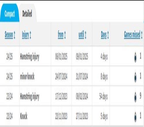 【让人想起马蒂普,空中对抗尚稚嫩】 说下球员,奥多涅斯属于一眼好感的身体模型,以当下年轻中卫的选拔标准来看,在地面对抗和防守移动都有体现出来非常好的竞技素质。 但空中对抗数据就显得普通,在过去两个赛季的欧冠联赛中,他在1600 分钟的出场时间里,空中对抗成功率仅为48%,在比利时联赛中仅有 56% 的成功率。假如说登陆英超、来到利物浦,高球会不会成为一个成长瓶颈,非常值得留意。 奥多涅斯我个人喜欢的点是他这个身体模型下相当不错的控球能力,不笨,脚下灵活,能摆脱能带球能推进(没法不想起你浦的上一个Joel,马蒂普的推进赏心悦目),长传短传中规中矩没有过于明显的缺陷,所以综合来看其技术底子是非常值得开发的。另外他还有一个优点是后场RCB和RB都兼顾的位置经验,能在战术层面提供多样性。 (无严重伤病史) 【结语】 奥多涅斯毫无意义算得上厄瓜多尔山谷独立队这几年里出产的黄金一代之一了,21岁在欧洲比甲豪门布鲁日和欧冠有超过百场的比赛记录,未来登入豪门可能性非常高(目前除了利物浦,最关注他的莫过于后防更新换代的国米)。今年夏季窗口布鲁日对于厄瓜多尔国脚要价在30m欧左右,冬季窗口也一样愿意放人离队,价格因为表现上涨,但也只有35-40m欧。我会说他肯定是爱德华兹喜欢的人,天赋明显也是比较培养价值的,1月份会不会有转会,可以拭目以待。 |