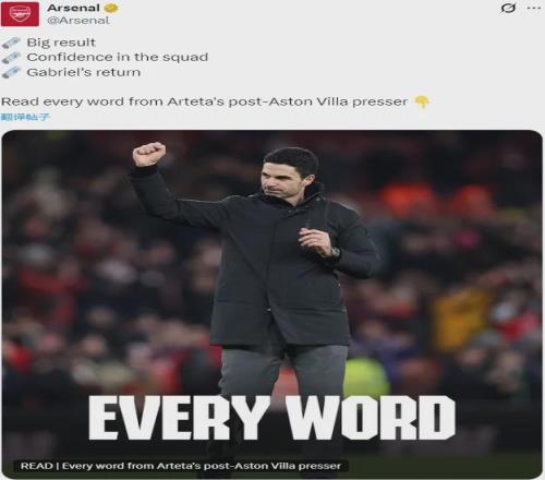 阿尔特塔出席了赛后新闻发布会,我们来看看阿森纳主帅的发言。 谈谈这场比赛的表现吧: 我超级开心,我们3天踢一场比赛,我们的对手已经11连胜,一支超强的球队,非常难踢。我们讨论过情绪上这场比赛要求有多高,并且前10分钟我们很挣扎,有点慢热,而维拉创造了一些威胁。然后我们调整了一下,更有控制力,哲凯赖什也获得了两次好机会,而下半场我们好多了,非常有效率,这点不像前几场比赛,今天我们非常高产也非常精准,这制造了不同。 你之前提到过去几场比赛希望差距可以更大,显然今晚你们做到了。在打进第一球后,球员们似乎闻到了血腥味,我想知道你是怎么看待的? 是的,我们想要继续,中场休息时我们有很多事情想要扭转,更加高效,我们做到了。我认为个人层面上,我们有一些非常好的表现,球队在进攻三区很有效率,不断攻入禁区,这制造了不同。 今晚和上周末的比赛,厄德高有多么重要?我们看到的是最好的厄德高吗? 他还需要一些稳定性。显然厄德高遇到了两次肩伤,然后他又膝盖受伤,这花了一些时间。现在你们能看到厄德高动起来了,他的活力回到了正常水平,在场上也敢于冒险了,他正以很棒的方式影响比赛。我认为厄德高今天表现非常好。 我能问问两个加布里埃尔吗?他们几乎同时复出,你对他们很满意吧? 是的,关于热苏斯我已经说过多次了,加布里埃尔的话,他从6周的伤病中复出,本来缺阵时间可能更长的。加布里埃尔面对的可能是最难控制的对手,尤其是锋线球员。 他们的前锋在进攻和防守的两个禁区里都以难以置信的方式影响着比赛。 赛后你和埃梅里握手了吗?我们没看到…… 你们看到了(握没握手),但没关系,一切都很好。 这种情况正常吗?你感到失望吗? 不失望,没事,这就是比赛的一部分,没什么不正常的。 关于赖斯,你认为他能在本周末的比赛中复出吗? 这要看情况,他必须先消肿才能恢复机能,今天赖斯还没有达到要求,让我们看看未来几天的情况再说吧。 我想知道你对祖比门迪的评价,他已经打进6球,这是他职业生涯新高,他融入英超和阿森纳的速度是不是很快? 我想我已经说过很多次了,他这个位置,要想这么早以他这样的方式对比赛产生影响是很困难的。但要称赞祖比门迪,同时称赞他的队友们,他们让一切变得更简单。 今天他在合适的时机插入禁区,并且非常冷静的完成了射门。 好的,谢谢你! 祝你们所有人新年快乐! 以上是新闻发布会,我也没看比赛,所以少说点吧(我发现一觉醒来确实爽,赛前赛后都省事)…… 阿尔特塔赛后多次用到了“效率”这个词,其实数据上看也确实如此,7脚射正4个进球,前几场比赛的不顺都返现到这场了……预期进球是3.17:2.67,其实维拉也有机会,拉亚比赛尾声的神扑有点不可思议……当然,阿森纳还是赢的毫无争议,这场没什么可说的。 厄德高这两场终于争气了,有点万般皆下品的感觉了!我之前也说过,厄德高绝对不是之前那种水平,不管什么原因吧,他明显是在复苏,助攻祖比门迪那球,在那个位置直塞线路、时机、力度恰到好处,我敢说队内其实没人能做到在中路送出这种直塞,而且还是他自己反抢的!特罗萨德的进球也有厄德高的功劳! 加布不用多说,这就是定海神针,萨利巴最后还被顶着进了个球,但加布很少有这种狼狈时刻;热苏斯的进球相当精彩,这很巴西!哲凯赖什其实很拼,两次头球很有威胁,但他这个效率的确是让人揪心……后面哈弗茨也复出了,竞争压力很大,当然这对阿森纳是好事! 祖比门迪不用多说,他是节拍器,看看皇马现在多愁中场没人组织就知道他的重要性,阿尔特塔说得没错,他这个位置,想买来就立竿见影很难,但祖比门迪做到了,实际上,祖比这个赛季的作用和表现绝不逊于托马斯这几年的平均值,只是两人风格不一样,而这才第一个赛季! 其他不多说,正如阿尔特塔最后所说,新年快乐就完了!