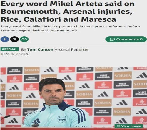 阿尔特塔出席了赛前新闻发布会,我们来看看阿森纳主帅的发言。 周二的比赛后有没有新的伤病情况? 没有,显然我们还没有训练,今天将是赛后的第一次训练,所以今天(周五)下午我们会有更多信息。 你之前说赖斯的膝盖有些肿胀,现在消肿了吗?他能出战周六的比赛吗? 还没有。我们今天还有一节训练课,让我们看看他今天感觉如何吧,对他来说,之前那场比赛还太早。 卡拉菲奥里和莫斯克拉呢?他们能出战吗? 他们两人都没法上场。 上赛季对阵伯恩茅斯感觉像是一个转折点,因为那是你们的赛季第一场失利,同时也拿到了第三张红牌,整个赛季则是6张,本赛季你们还没拿到红牌,你对纪律性感到满意吗? 是的,显然是,我们知道尽量保证场上11人作战有多重要,去年则没有做好。我们输给了伯恩茅斯两次,所以我们知道这有多困难,也知道他们有多出色,知道他们可以从各个方面给你制造威胁。 转会窗开启了,你之前说阿森纳总是会做好准备,假如你们买人,那会是针对未来的长期目标吗?或者你对租借球员持开放态度吗? 我们对所有的选择都持开放态度,无论是短期、中期还是长期选择……不过让我们看看会发生什么吧,看看未来几周有没有新动向,我们会努力做出正确的决定。 关于球员离队,恩瓦内里自从布鲁日的比赛后就没出场过,对维拉连大名单都没进,你怎么考虑的?你会考虑将其外租获得一线队机会吗? 每个球员都很重要,每个球员都有自己的角色,而这个决赛可以因为不同的原因发生改变,所有人都必须做好准备出场。 你们现在4分领先曼城,阿森纳全队现在心情如何? 上场比赛之后显然大家心情很好,面对如此强大的对手我们能以那样的方式赢得比赛实属不易。现在全力专注于伯恩茅斯的比赛,我们知道这场比赛有多困难。 特罗萨德是阿森纳2025年英超进球和助攻最多的球员,你对他本赛季的表现满意吗? 是的,我认为特罗萨德非常稳定,但我要说所有的锋线球员都是如此,因为本赛季他们都做出了很大的贡献,无论是作为首发球员还是角色球员,这就是我们需要的。他们能给球队带来不同的能力,我认为他们现在处于很棒的时刻。 阿森纳现在领先4分,如果赛季初让你签字在赛季过半时领先4分,你会愿意吗? 这就是我们的位置,我们很开心。球队总是可以变得更好,还有地方可以继续提高,我们还要专注伯恩茅斯,这也是新年的第一场比赛。 我想问问赖斯,你之前说他在对布莱顿的比赛中就感到不适,但他还是完成了比赛,事后来看,赖斯是不是本来该被换下的?你后悔吗?你如何评价这次受伤? 不不不,赖斯做到了,有时候这很正常。你被踢了,而整场比赛你都肾上腺素飞升,身子是热的,所以你能坚持。然后你的身体会有反应,甚至可能出现我们预期之外的反应,很不幸,这就是我们目前的情况。 那么当你遇到一名球员受伤时,你脑海里是怎么想的,是什么反应? 首先,我们怎么才能做到更好,其次,这是足球运动的现实。看看过去三个赛季,我们已经受伤比之前少了。 你要把伤病区分来看,有些是重伤,有些是轻伤,我们必须提高,但我们的伤病情况已经比往年好很多了。 随着球员们复出,我知道很多人会讨论轮换问题,这是不是可以让你的阵容更有弹性,让其他一些没有在一起踢比赛的球员上场? 最终,我认为我们需要谈论的是表现,而非轮换。我们想要的是每三天都拿出顶级的表现,持续整场,这才是我们要关注的。而为了做到这点,你需要考虑的是最好的球员、最好的状态以及最好的默契关系,这才能实现目标。 我还想问问特罗萨德,去年夏天你们的操作不太寻常,给他涨薪但不延长合同……我认为特罗萨德的合同还有18个月,你希望他延长合同吗? 我们对他感到非常满意,他很清楚,我们已经讨论过很多次,我认为特罗萨德非常开心能留在这里。 以上是新闻发布会。 还是先说伤病。目前来看,赖斯能否赶上下场比赛不好说,卡拉菲奥里和莫斯克拉则基本确定会缺阵。 有消息说哈弗茨也没出现在周五的训练场上,但哈弗茨已经缺阵很久,调整下身体负荷很正常,赖斯则不好说是什么情况…… 下面阿尔特塔还说到他不后悔让赖斯带伤坚持踢完对布莱顿的比赛,我不知道该怎么说,我个人是认为当一名球员有受伤迹象时,应该换下他,万一赖斯真的长期缺阵,那真的得不偿失。 阿尔特塔还谈到了伤病现在已经比之前少很多,并且看来他非常抵触外界让他轮换的问题。实际上塔子倒也不是没道理,确实想赢球就必须让最好的球员上场,但长期不轮换,你很难保证最好的球员能一直在场…… 其实说实话,我已经不太在意轮换和伤病的问题,关键不是问题,关键是你有办法解决问题,塔子显然有办法,那就是说服老板买人大幅加强阵容深度,他做到了,所以阿森纳现在伤的起……只要能夺冠就行,反正现在阵容这么雄厚,说实话只要不是同一个位置伤三四个,阿森纳就能应对。 买人的问题下面再说,恩瓦内里的未来下面也会有讨论,这里不说太多了。 至于特罗萨德,合同还有一年半,他已经31岁,主动权其实依然在阿森纳手中,夏天再说也晚不了。