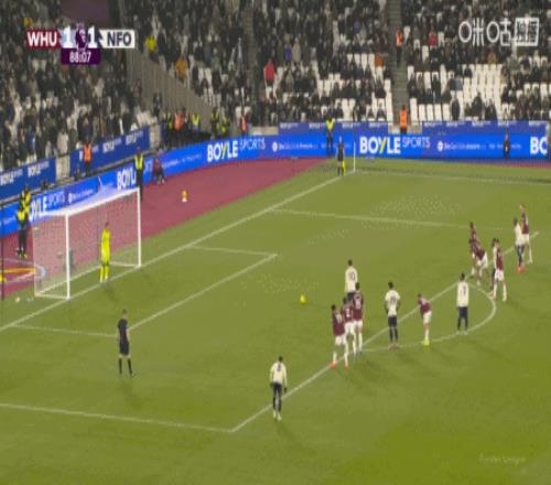 第13分钟,西汉姆联开出角球,穆里略解围不慎自摆乌龙,西汉姆联取得领先。