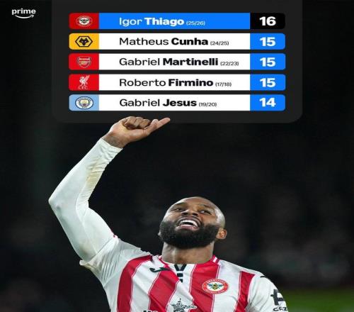 英超第21轮,布伦特福德主场对阵桑德兰,布伦特福德前锋伊戈尔-蒂亚戈上演梅开二度,以16球打破巴西球员单赛季英超最多进球纪录。