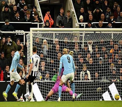 上半场,主场作战的纽卡踢得极为主动,几次进攻都险些攻陷曼城的球门。在纽卡强硬的攻势下,曼城只能暂避锋芒,以稳为主。于是,两大石油豪门联手为球迷奉献了个零射正的精彩上半场。 下半场一开始,纽卡再次错过领先的机会,吉马良斯的补射被圣詹姆斯公园球场的球门立柱无情拒绝。2分钟后,曼城全场的首次射正就取得了进球——多库左路突破下底传中,贝尔纳多前点一蹭,中路跟上的塞梅尼奥近距离推射空门得手。