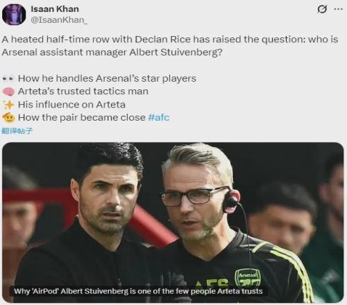 最近赖斯在中场休息时和斯图文博格发生了争吵,邮报记者IK借此机会谈到了这名阿森纳的助教。 报道称,在危机时刻,斯图文博格是阿尔特塔会求助的人,阿森纳主帅非常信任他,因为斯图文博格在曼联以及威尔士都有过工作经历,是个业内经验非常丰富的人。 IK指出,阿尔特塔是个在战术思考上非常执迷甚至可以说固执的人,但他会向斯图文博格寻求建议,枪手助教也是少数几个能影响阿尔特塔决定的人之一,而这得益于斯图文博格对比赛的出色理解。 邮报进一步指出,当和球员们沟通时,斯图文博格非常直接,无论这些球星有多大腕,他都会告诉他们在比赛中做错的地方以及应该如何修补,与知名明星打交道并不让斯图文博格感到困扰,他对此有足够的勇气。 说起斯图文博格,不幸的是他在19岁就结束了职业生涯,当年他在床上滚了下来,意外受伤,被迫给刚刚开始的职业生涯画上了句号。 首先我得澄清一点,那就是赖斯和斯图文博格之间并没有什么事情,当时的情况当时就解决了,只不过借此机会简单介绍下此人。 比赛中除了乔弗,可以说上镜率最高的教练组成员就是斯图文博格了,我们经常能看到他在技术区和阿尔特塔一起讨论,而且这么多年了,阿尔特塔一直把他留在身边,说是心腹爱将也不为过。 但要这么说的话,可能此人也不太擅长调教进攻,应该是个务实派,希望这种风格能帮助阿森纳拿到冠军吧。