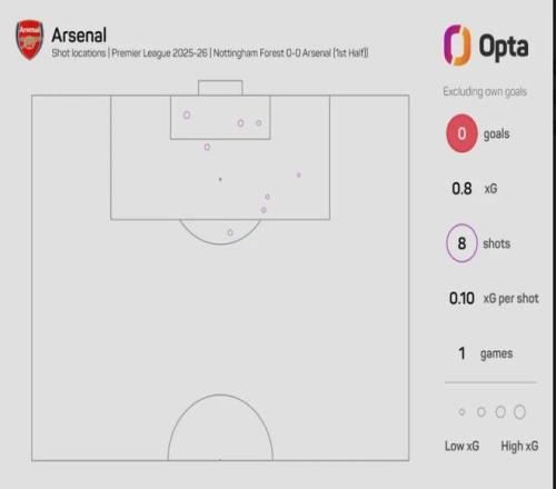 Opta统计,阿森纳在上半场对诺丁汉森林的比赛中有8脚射门,但没有一脚射正,这是2019年12月阿尔特塔上任后执教的首场英超比赛以来(对伯恩茅斯,上半场9次射门),上半场射门次数最多但没有1次射正的情况(只算英超比赛)。 上半场射门是不少,但实际威胁不多,最好的机会莫过于马丁内利在门前拿到的补射机会,但这球居然鬼使神差的射偏,我认为这也是最好的机会了……下半场虽然换上了特罗萨德,但进攻同样没有本质的改善,其实小马丁感觉换早了一点。