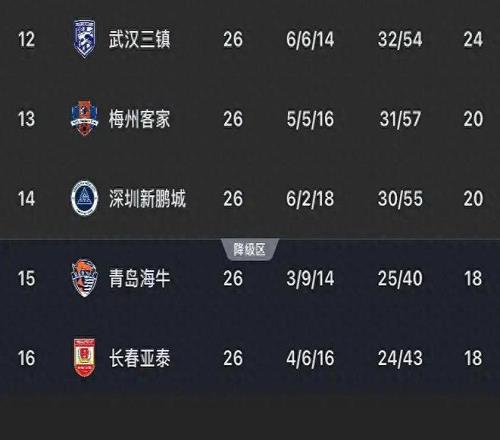 中超降级队伍预测!青岛海牛基本降级,长春亚泰有望突围!