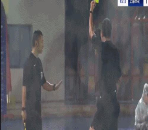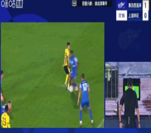 第16分钟,兰克尔-泽禁区内摔倒,主裁判王竞第一时间判点,VAR介入,王竞观看后取消点球,并向兰克尔-泽出示黄牌。