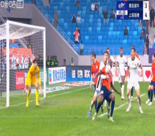 第90+4分钟,海牛角球进攻,兰克尔-泽倒钩打门,宋文杰补射破门,海牛3-4!