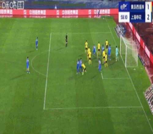 第58分钟,申花角球进攻,老将于汉超抢点头球破门,申花2-1!
