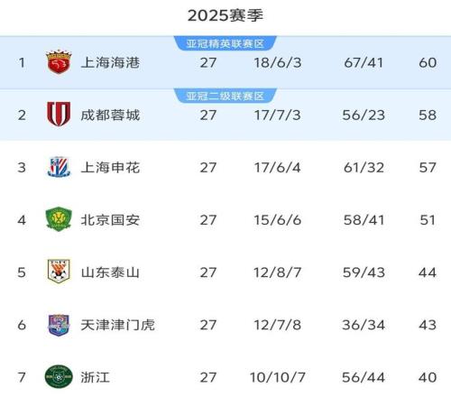 中超最新积分榜:前7达40分,国安提前3轮无缘争冠,深圳逃出生天