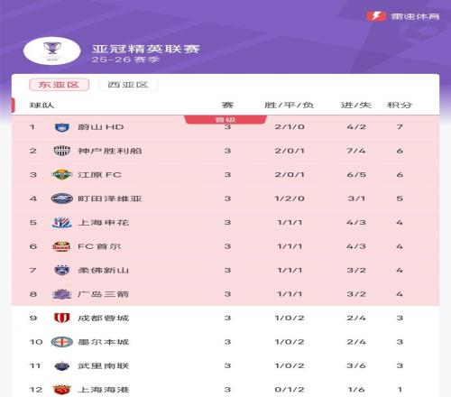 亚精英赛最新积分榜:申花第5位列晋级区,蓉城第9,海港垫底