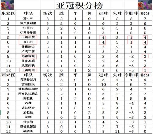 亚冠最新积分战报申花完胜首尔升至第5中超冠军成唯一不胜球队