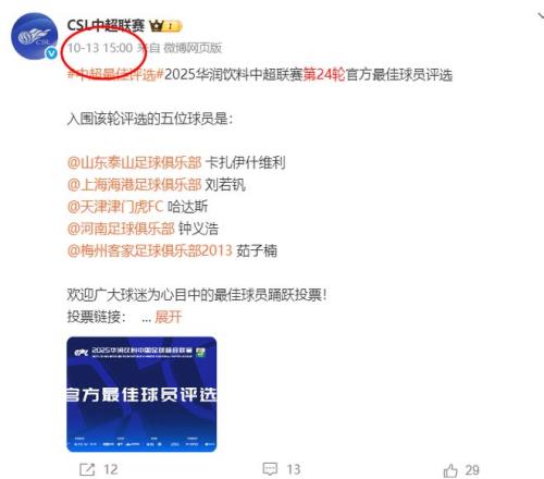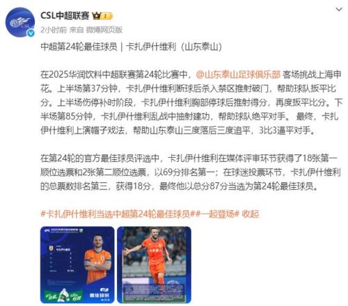 北京时间10月23日,中超联赛官方终于公布第24轮最佳球员人选,瓦科当选,这是他连续两轮当选最佳球员,不过这次评选长达10天。射手榜上,瓦科继续领跑,不过优势只剩下一球,本轮泰山队对阵海港的比赛,他和莱昂纳多的射手王之争也是一个看点。