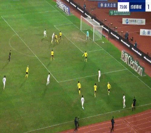 第67分钟,罗慕洛角球开到禁区,费利佩头球攻门顶进,成都蓉城扳回1球。