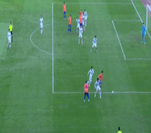 第32分钟,卡扎伊什维利分球,谢文能右路横传,无人盯防的泽卡头球冲顶破门。