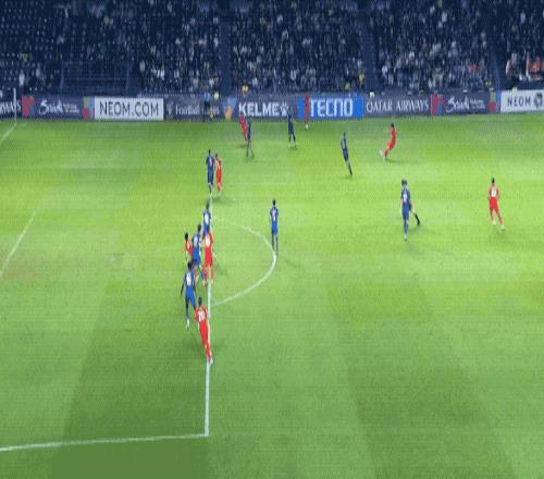 开场不到5分钟,在武里南联前锋的逼抢下,亚力斯祖一路往回盘带,一脚有力的回传,差点自摆乌龙。