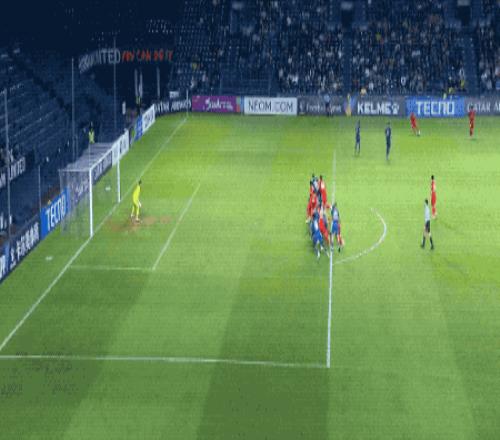 两分钟后,海港获得前场任意球,王燊超高高跃起,头球的方式和李圣龙如出一辙,门将再次做出关键扑救。