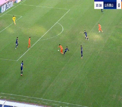 进球时刻 第38分钟克雷桑直塞,泽卡拿球突入禁区小角度射门打进,山东泰山客场1-0领先。