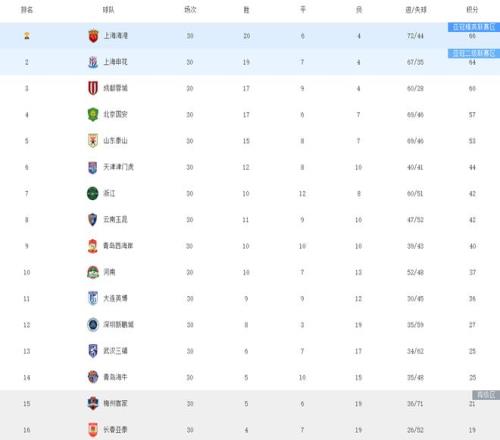 1、这是上海海港连续三个赛季夺冠,队史首次做到,也是连续三个赛季力压上海申花夺冠。 2、本赛季,上海海港缺少奥斯卡、武磊基本不踢情况下,依然能够拿下冠军,上海申花拼了三个赛季连续收获亚军。 本赛季联赛最终排名如下——