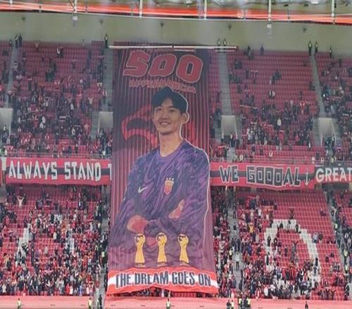 海港球迷打出TIFO,纪念颜骏凌代表球队出战500场