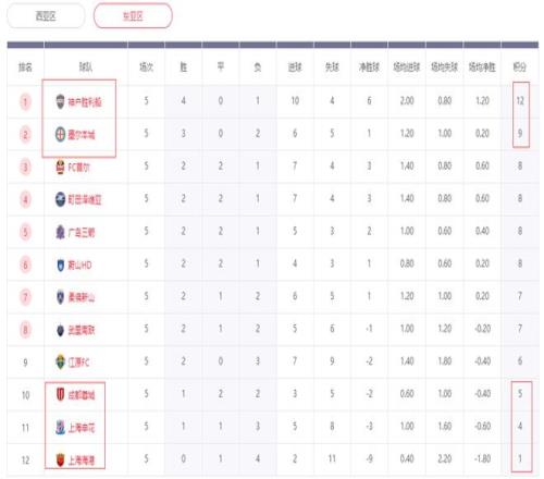 积分榜方面,神户胜利船客场击败申花后,4胜1负再多墨尔本城3分,依然是稳居榜首。申花输球后则是还是少成都蓉城1分排名倒数第2,中超3连冠的上海海港更惨,5轮只拿到1分排名垫底。加上倒数第3的成都蓉城,中超3强齐齐垫底,这也是相当的尴尬。 |