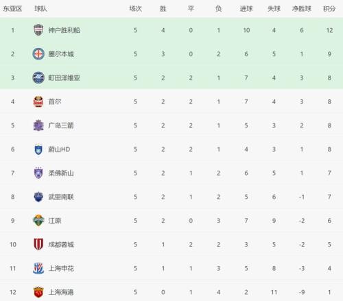 前一个比赛日,两支中超球队上海海港、成都蓉城已经出战过,最终上海海港主场1-3输给首尔、成都蓉城主场1-1打平广岛三箭。 这样,中超三队连续两轮比赛全部不胜,也导致积分榜排名继续位列倒数前三名,上海海港继续垫底,只是成都蓉城和上海申花的位置换了一下。