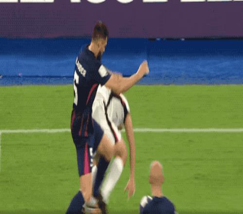 第17分钟,格里德尔在中圈拼抢时一记后蹬腿,鞋钉划在李圣龙的脸上,直接导致李圣龙面部出血,裁判并没有出牌。