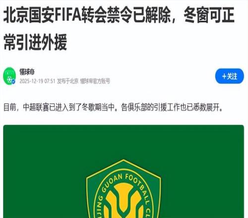 好消息!国安完成中超债务清偿,联赛准入无忧,引援已悄悄落地
