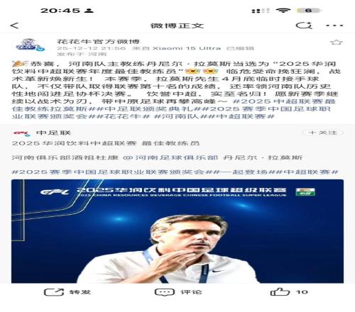 花花牛上一条河南队相关的微博停留在2025年12月21日 二、中国足球市场的集体遇冷 尽管中国足球遇到了两个积极的信号:中超市场开始回暖,中国足球打出最强的一届U23,但中国足球整体的市场信心仍不足,加剧了招商难的局面。