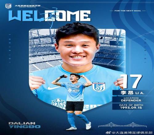 北京时间1月20日,大连英博官方宣布,原上海海港后卫李昂加盟俱乐部。